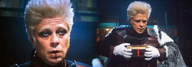 You may have noticed that he looks like he came straight out of an old Joel Schumacher movie. James Gunn – director of Guardians of the Galaxy – described The Collector as an outer-space Liberace. Benicio probably took a couple acting cues from Javier Bardem’s Raoul Silva in Skyfall.